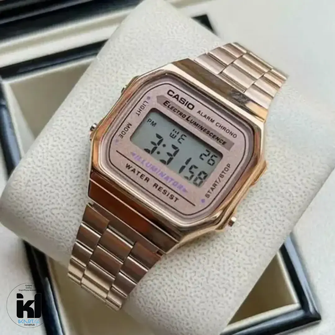 The Casio Retro Gold Tone Digital Watch for ladies offers a timeless blend of fashion and function. Featuring a sleek, retro-inspired gold tone, this watch adds a touch of elegance and nostalgia to any outfit. Its slim, lightweight design makes it perfect for daily wear or special occasions.